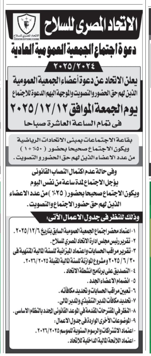 البريد الالكتروني : admin@fencingegypt.org
